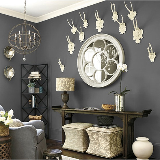 Art, accessories, real or fake: this trend is surprisingly versatile. I’ve featured antlers on pillows, in holiday decorations and even painted them for display in bookcases. We’ve displayed (cruelty-free) trophies, like deer and horse heads, in frames for an amazing rustic-chic combo. I have even created a “Cowboys and Antlers” board on Pinterest! One of my favorite projects even has a deer head mounted in the middle of a gorgeous framed mirror (which just so happens to work great for jewelry storage). And since deer shed their antlers annually (called sheds), it naturally makes finding them and displaying them around the house quilt free!
