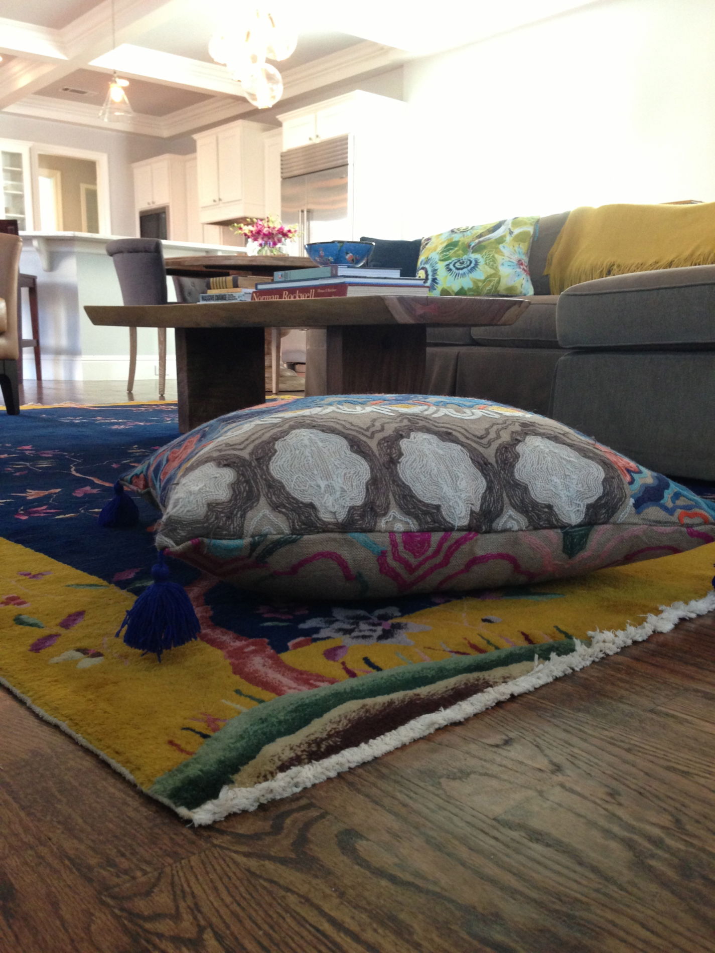 Making it to the end of a project and seeing it all come together is one of the best feelings to me. We recently photographed one of the latest Studio projects and I couldn’t wait to share the details. My client has a fabulous collection of Chinese Art Deco Rugs. The rugs are a mix of vibrant colors, and traditional motifs, and completely bold. They command your attention as well as a need for bold color and fabulous accessories! So we brought simplistic basics with all of the furniture and tied it all together with the pillows, lighting and little details around the house. Can’t wait to share this one!