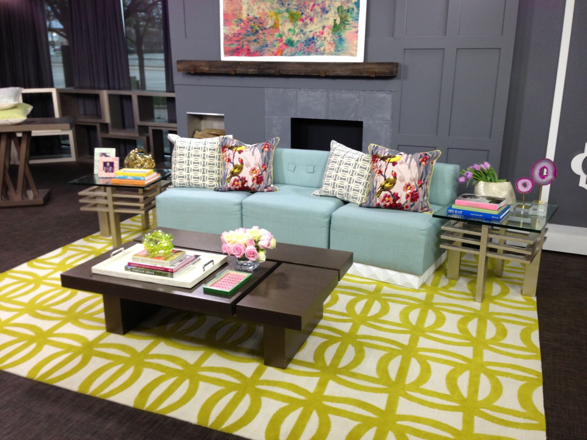 BEFORE: D TV launched in February of this year and we went with a sophisticated color palette that included a modern graphic rug, bold turquoise seating, art and gorgeous classic tables! You can find details on where to pick up these pieces HERE from our past blog post and HERE on the DHome Blog.